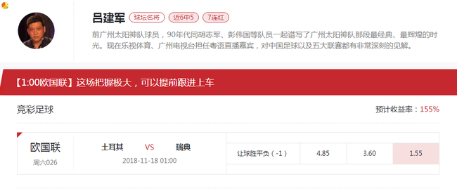吕建军竞彩推荐:土耳其vs瑞典