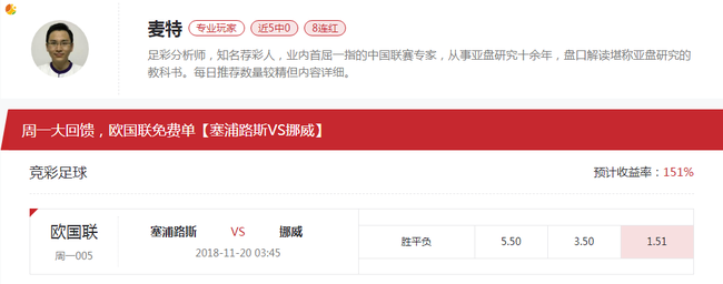 塞浦路斯目前已经基本保级成功,但是已无晋级可能,挪威队则是取胜就有很大希望晋级,本场机构开出挪威客场让0.75球超低水,对客队支持力度很大,欧赔各家客胜意见分歧较小,看好挪威赢球。
