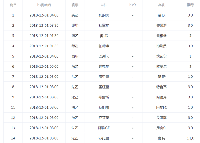1、克莱蒙 对阵 贝兹尔,推荐双选30。贝兹尔作为升班马,球队表现诡异,主场3平3负排名垫底,客场5胜4负排名第2,球队客场反而能够放开踢,这样的球队,走两头是正路。