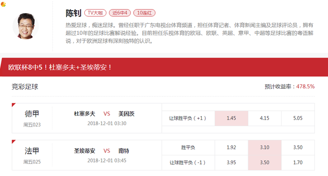 第二场:圣埃蒂安 VS 南特。圣埃蒂安目前联赛6胜5平3负,球队主场拿下5胜2平的不败战绩,射手卡斯利贡献主场有6个进球。不过最近球队状态下滑,周中也有一场法国联赛杯的比赛有所消耗。而南特方面,进入10月中之后对比起之前的表现有了跃升,球队从那时到现在拿到4连胜+2连平的正式比赛成绩。前锋萨拉已经贡献11个联赛进球了。目前亚盘从主让半球回落到主让平半,有一定的回调,看好两队进球不多,进球数可选择1、2,然后是看好南特之余双选非让球平+让球平。我推荐比分1-0、1-1。
