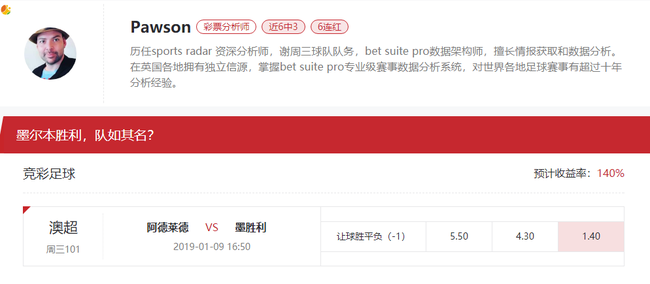 [新浪球通]Pawson竞彩推荐:阿德莱德vs墨胜利