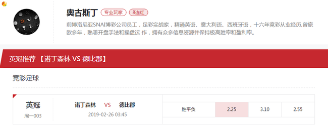 这场比赛是地区德比,对于双方都比较重要,但是德比郡过去几场的表现看,他们的控球和体力都有一些问题,虽然积分比诺丁汉森林高,但是想要拿分难度很大。