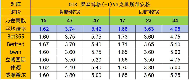 凯利方差数据原理:凯利,用于还原**赔付率;方差,用来量化数据间的分歧。凯利方差,描述的是**在“赔付率”上的分歧,数值越大,该选项若打出,**赔付的差异越大。对于热门投注项,**在该项的赔付控制得非常谨慎,差值一般不会过大。(方差的正常值一般是该项上平均赔率*10,低赔方除外。)