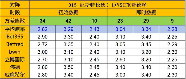 主胜初赔比过去2个赛季都高开不少,后市赔率继续向哥德堡倾斜,赔率走势符合两队本赛季的状态。目前胜平差都在低位,几家公司示弱主队的步调较一致,建议支持客队。竞彩建议单选客胜。
