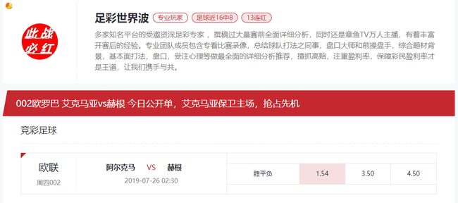 故本场走上盘主胜,竞彩不让球胜平负选胜。