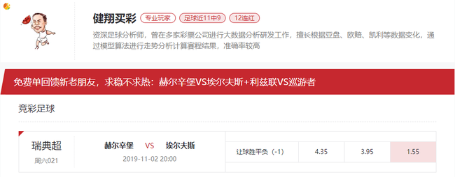 周六021 瑞典超 20:00 赫尔辛堡VS埃尔夫斯