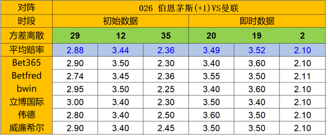 盘赔后市示好近期起势的曼联,但初赔对曼联其实低看态度明显;目前胜平差在低位,赔率公司对伯恩茅斯有明显防范,博主队不败。