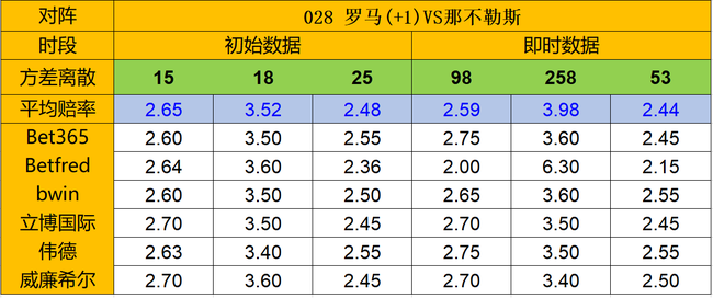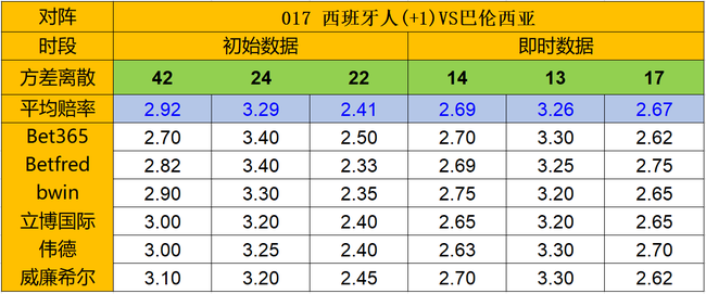 (方差的正常值一般是该项上平均赔率*10,低赔方除外。)