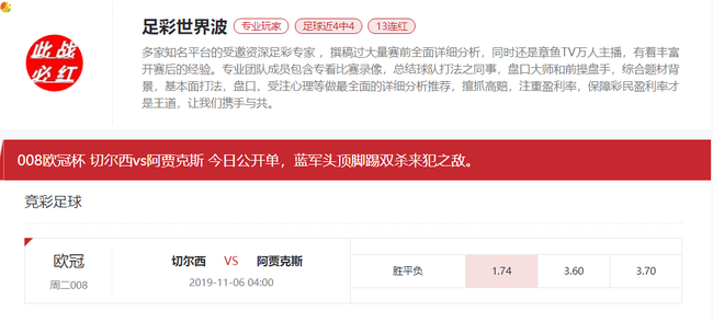 故本场走上盘主队切尔西胜,亚指切尔西让半球,竞彩不让球胜平负选胜。