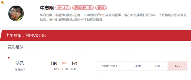 解读理由:两队都是这赛季从法甲降到法乙的降班马,开局阶段的发挥也都不是太好,但甘冈的调整比卡昂更快,目前的战绩也是略好于卡昂,不过最近卡昂的反弹势头也很猛,连续六轮打出了2胜4平的战绩,反倒是甘冈在之前打出两连胜之后,近来的状态再次出现下滑趋势,上一轮更是0比4惨败给了勒阿弗尔,那么此番他们主场作战,指数上让到半球倒也还算支撑力度较足,可水位上一路从初始的中水升到了高水,后续不排除会有降平半的可能性,此外就是在双方过去四个赛季法甲的交锋中,甘冈面对卡昂是6平2负一场未胜,在心理上可以说也是完全落在了下风,所以此战甘冈想要翻身只怕不太容易。