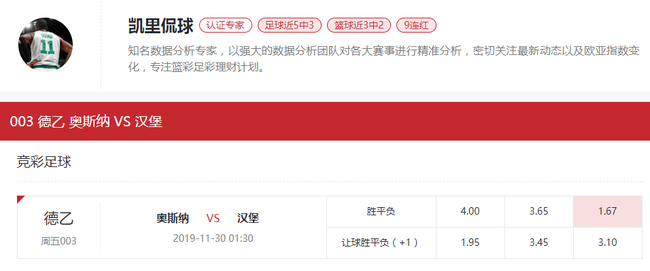 竞彩推介:客胜 数据倾向:汉堡(-0.5/1)