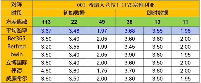 本场平赔后市升幅偏低,目前平差在低位,分胜负格局;不过目前主胜差是在合理位置的,考虑到希腊人竞技本场输球基本也能出线,本场正路支持塞维尔亚即可。竞彩建议单选客胜。
