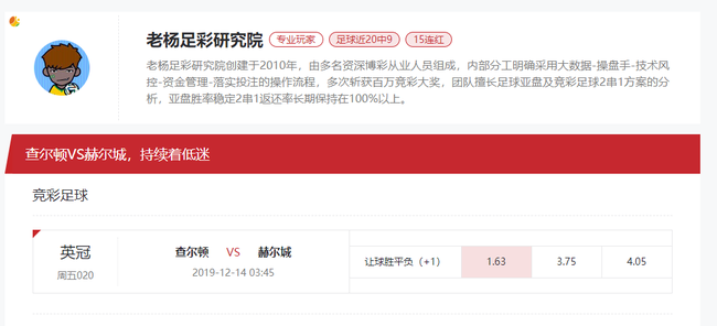 [新浪球通]老杨足彩竞彩推荐:查尔顿vs赫尔城