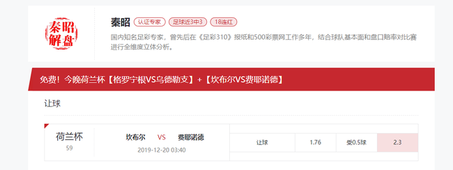 坎布尔是荷乙领头羊,上轮联赛输球之前曾取得13胜3平的连续16场不败战绩,在荷乙可谓是独领风骚。费耶诺德近13场比赛仅取得4胜,近9个客场比赛仅取得1胜,表现十分平庸。大部分亚洲公司初始开出客让1球,受注后降至客让0.75球,并未借两队实力名气差距来做热费耶诺德,而是借两队近期战绩对比来制造客胜不稳感,吓唬玩家去博冷支持坎布尔,这样客胜反而有望顺利打出。两队都不会派出主力阵容出战,但是费耶诺德的板凳深度无疑更强,应该能在90分钟内取胜晋级。