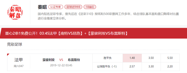 两队联赛+杯赛近8次交锋南特6胜1平1负,占据压倒性优势。当前南特实力仍略胜一筹,积分排名也领先,南特主场让不到0.5球欠缺说服力。南特近4轮联赛取得3胜,而昂热近4轮联赛1平3负。含杯赛在内,南特近10个主场比赛取得7胜,而昂热本赛季9个客场比赛只赢了1场。亚洲公司只给出主让0.25球中低指数,考虑以上因素,投注南特输半博全赢的注码必多,主胜很难打出。昂热应能立于不败之地,竞彩选择主让1球玩法的主负。