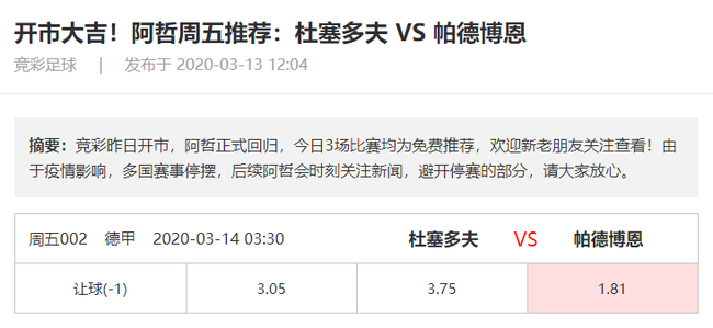 本场是一场保级大战,两队目前均深陷降级区,不过杜塞尔多夫显然要比帕德博恩处境好一些。此外帕德博恩是升班马,实力显然不足以完成保级,不过他们客战成绩要略好于主场。杜塞尔主场相对更好,但胜率也着实不高,近期连续4场不败的成绩还算尚可,显然他们状态有所回暖。此外他们本赛季主场的3个胜场有两次都是在升班马身上获得的,颇有点欺软怕硬的特性。