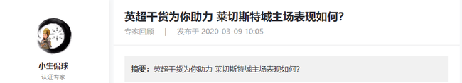 莱切城:莱切城上场比赛在足总杯中主场1-0战胜伯明翰,结束了自己两连败的走势,状态回暖,最近10场各项赛事,球队取得3胜2平5负的成绩,目前积50分排在第3的位置,领先第五的曼联5分,积分上还是略有优势,但是球队近期主场胜率不足,最近3个主场仅赢下1场,此役主场还是有争取连胜的战意。