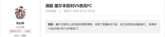 这场始终是坐镇主场,看好墨尔本胜利不败。