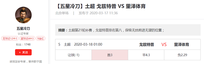 戈兹特普主场4胜4平3负,主场成绩中庸,不败概率超过七成,还算过得去。关注五星冷刀。从2018年8月,即上赛季开赛至今,戈兹特普只出现过1次主场两连败,本赛季还未出现主场两连败的情况,在上一个主场0-3输给领头羊伊斯坦堡的情况下,本场面对实力明显较弱的里泽体育再败可能已经非常微弱。