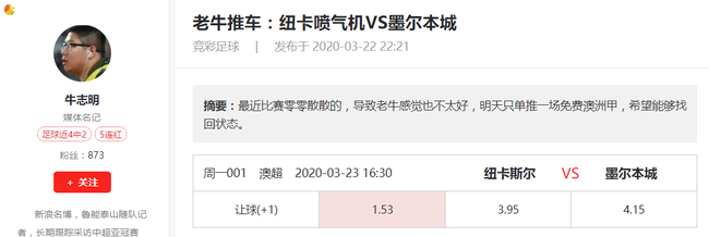 解读理由:纽卡喷气机近来状态不差,上一轮客场也只是小负狮吼,而且在这之前他们连续六战不败了,只是前期他们欠债太多,想要打进季后赛希望不大,不过此番坐镇主场,虽说面对的是排名第二的墨尔本城,而且前两回合还都输给了对手,可就目前的指数只给出客让平半中高水来看,纽卡喷气机应该还是不落下风的,尤其在主场他们已经连续四轮没输球了。
