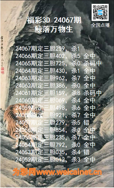 上一篇:福彩3D24067期龙虎斗胆码 杀码图