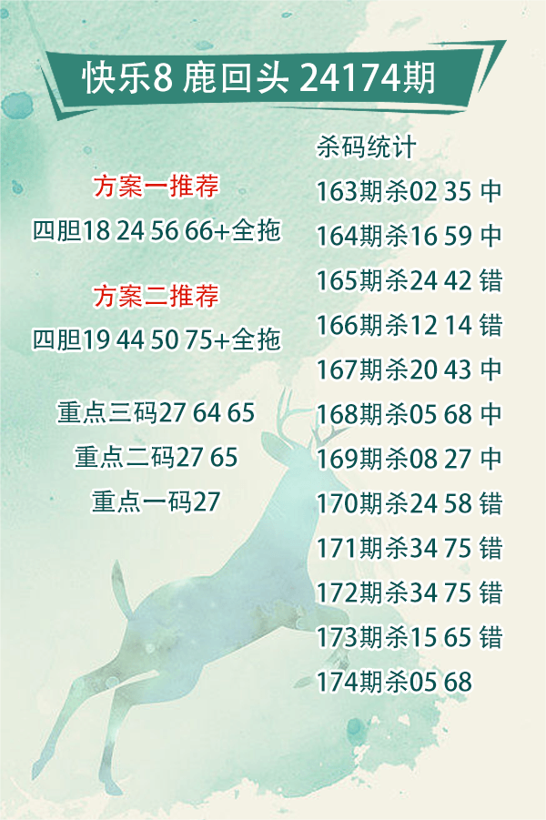 快乐8 24174期鹿回头杀码统计图