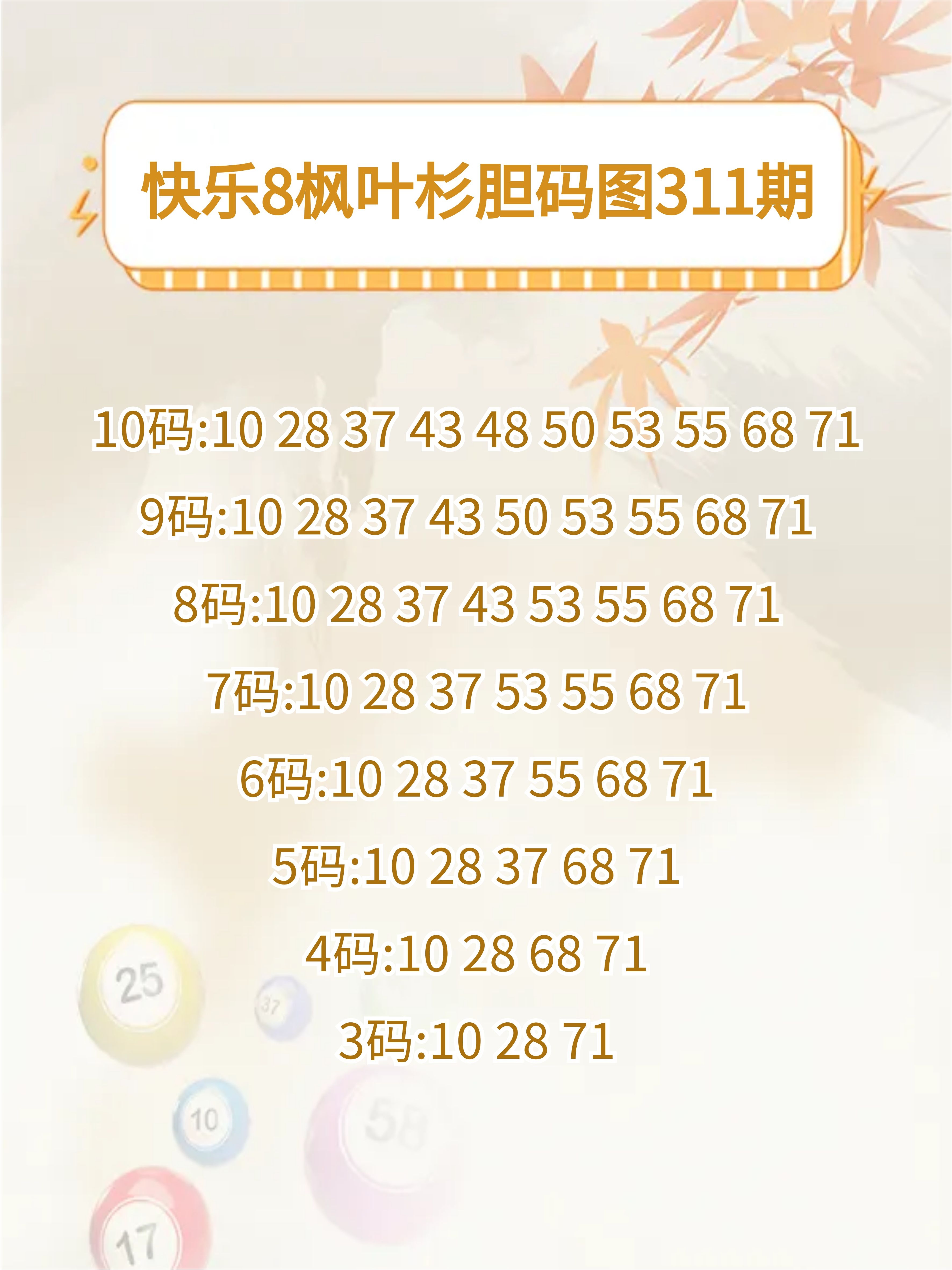 快乐8 24311期枫叶杉胆码图谜
