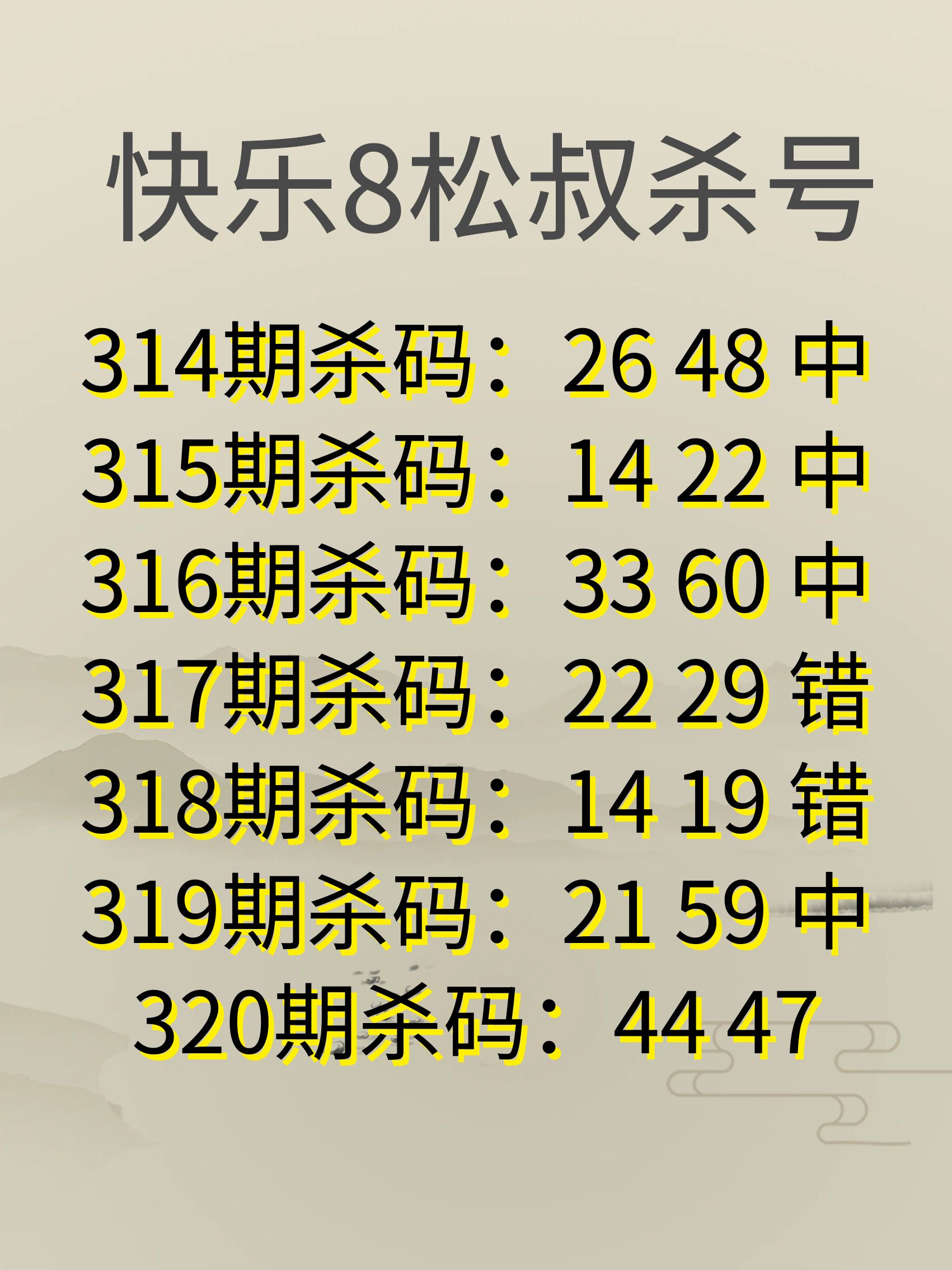 快乐8 24320期松叔杀号图