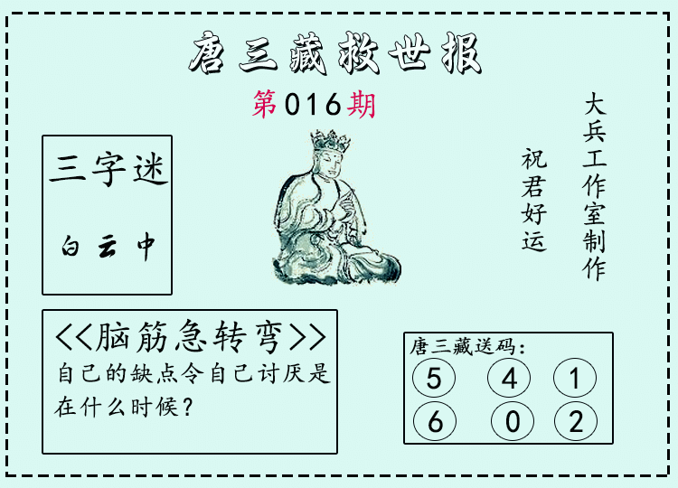 25016期:福彩3D【唐三藏】微彩精华字报 开104 送码中