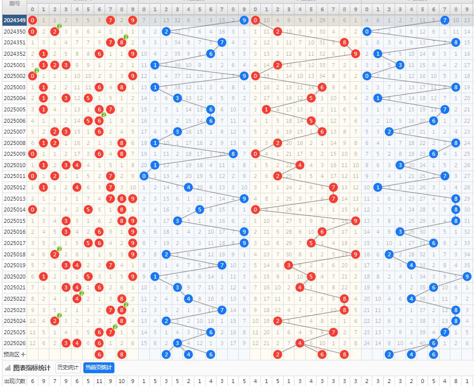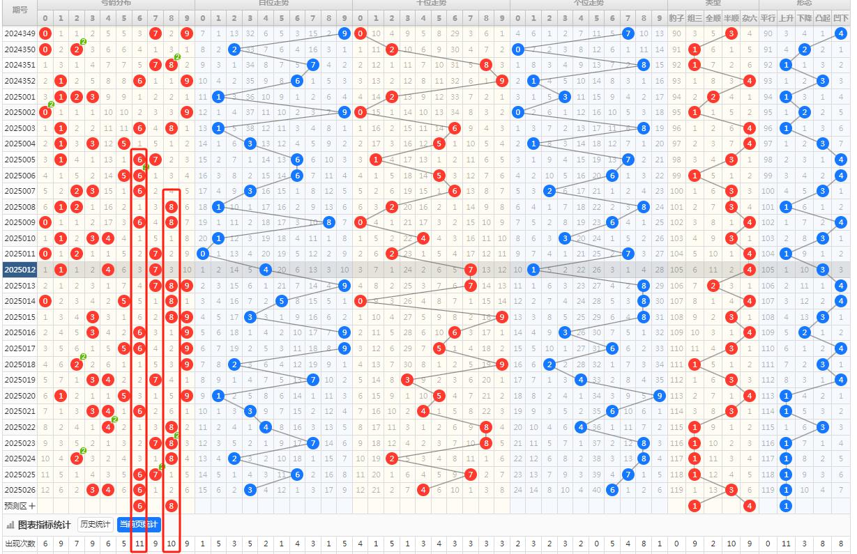 上期个位开6,根据走势图,本期关注号码02468