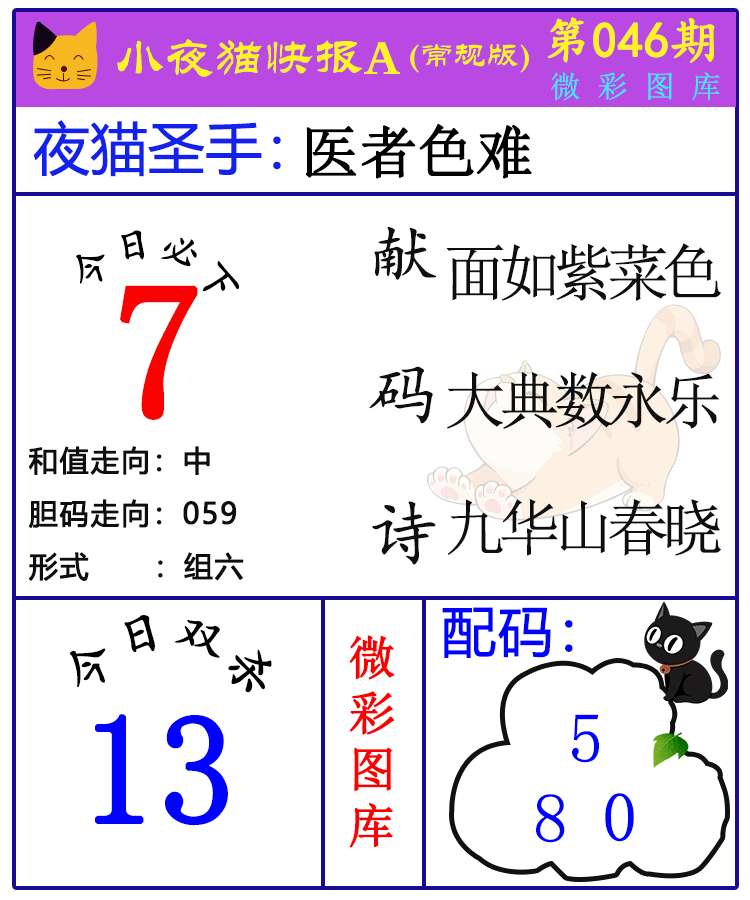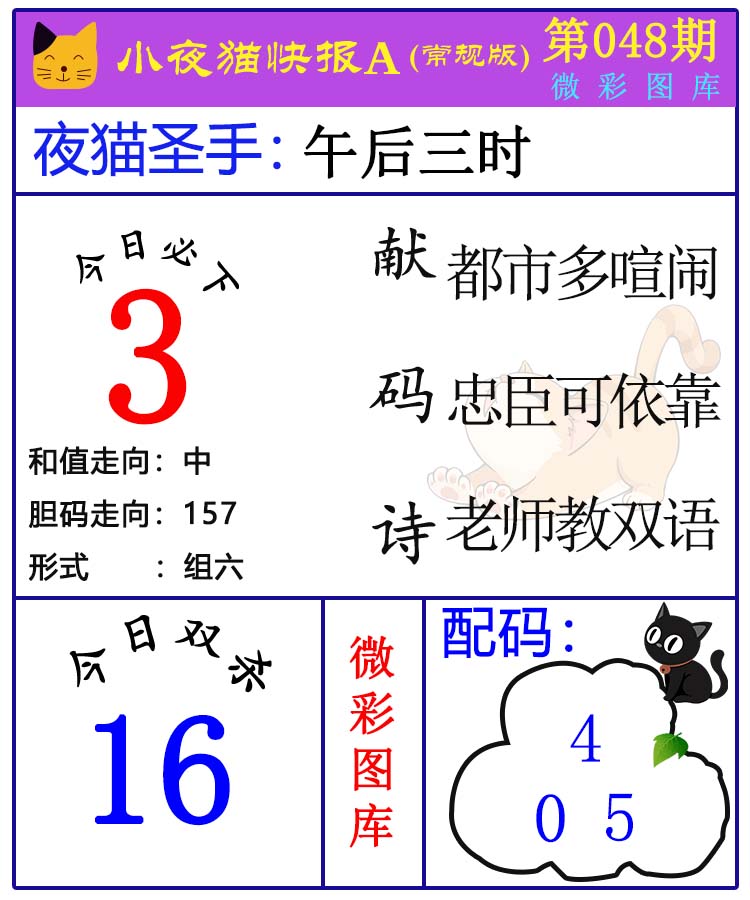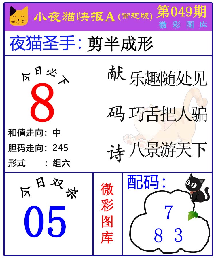 ?25048期:福彩3D【小野猫快报】精选版图库 开640 配码中