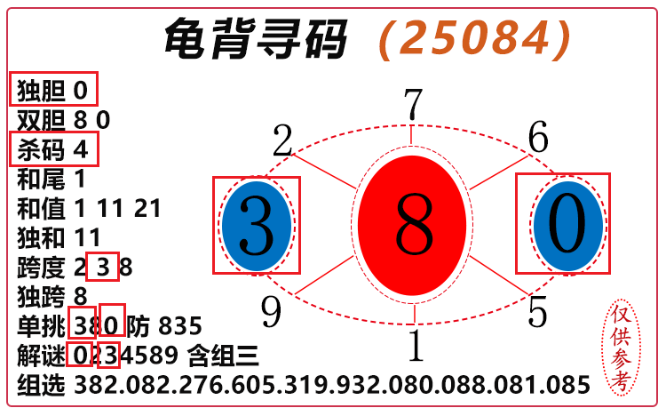 25084期:3D图谜 开030 胆码红0,杀码准,跨度红3
