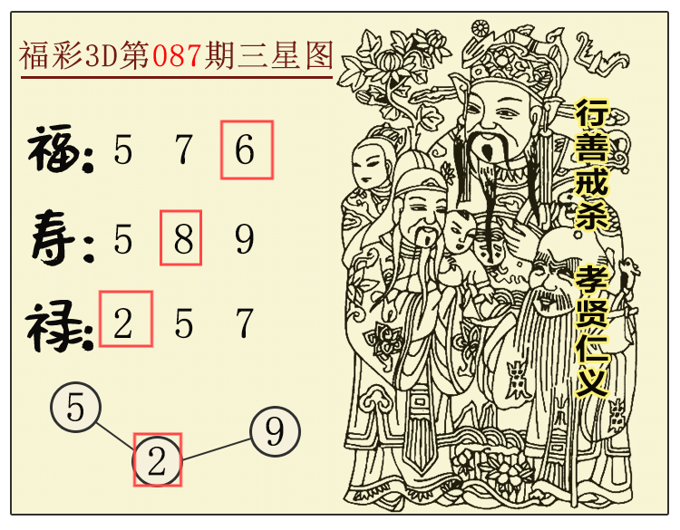 25089期:福彩3D【三星图】字谜推荐 胆码58连红 上期胆码红02