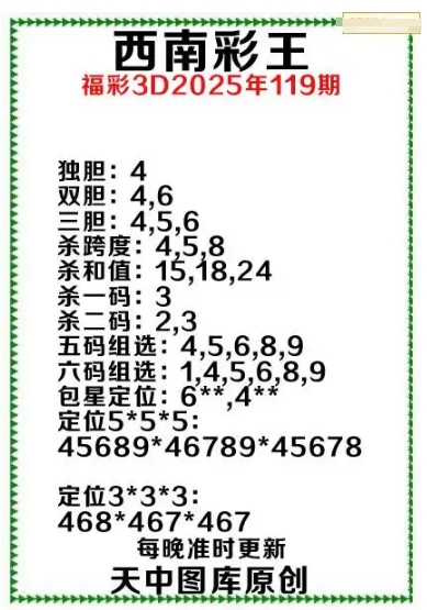 福彩3D25119期天中全套预测分析图 发表于:2025-05-09 09:55:08 浏览次数:0 上一篇:25119期: 福彩3D丹东山东真诀捉码图 下一篇:九宝图25119期福彩3D寻码图 推荐文章