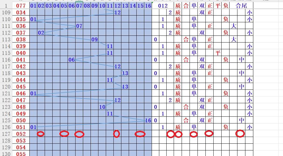 如上图4,012路分析012路,本期重点10路。重点 02 05 08 12 15