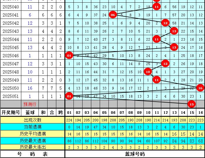 一号球分析:上期开出奖号01,该位最近10期出现范围在01-16之间,中点为8.5,其中中点以下的奖号开出8次,中点以上的奖号出现2次,本期该位继续关注中点以下的红球,考虑号码07。