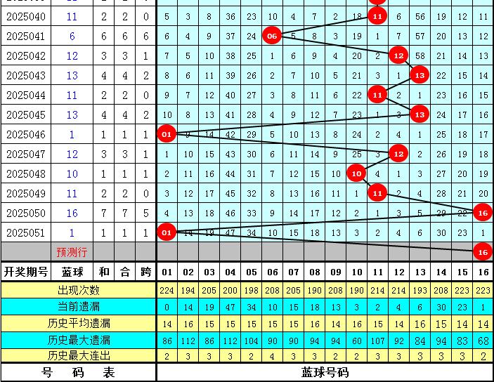 蓝球分析(定义:01-04为一区,05-08为二区,09-12为三区,13-16为四区):上期蓝球开出一区号码01,最近10期蓝球四区落号比为2:0:5:3,总体上三区蓝球走势最热,二区蓝球没有出现,本期蓝球看好在第四区开出,独蓝参考16。