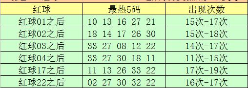 红球17之后最热5码为:11、13、26、33、22;