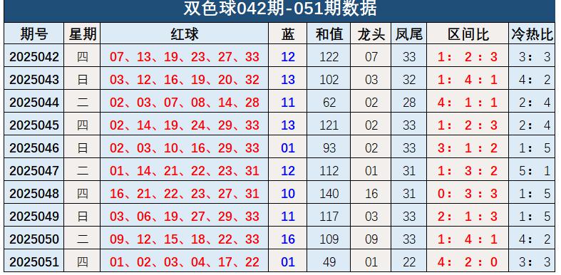 双色球25052期 本预测和值上升,关注和值范围115-120