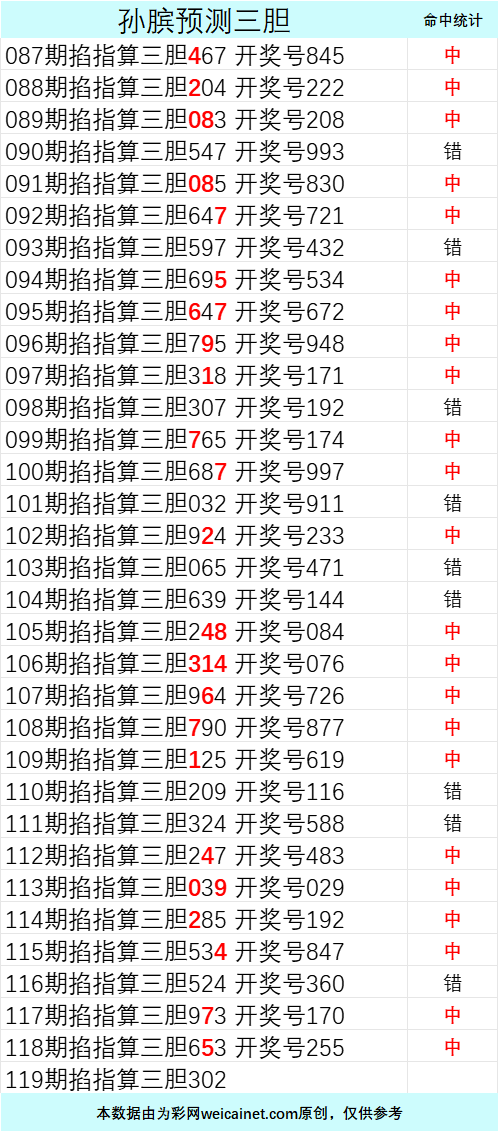 排列三25119期孙膑预测三胆