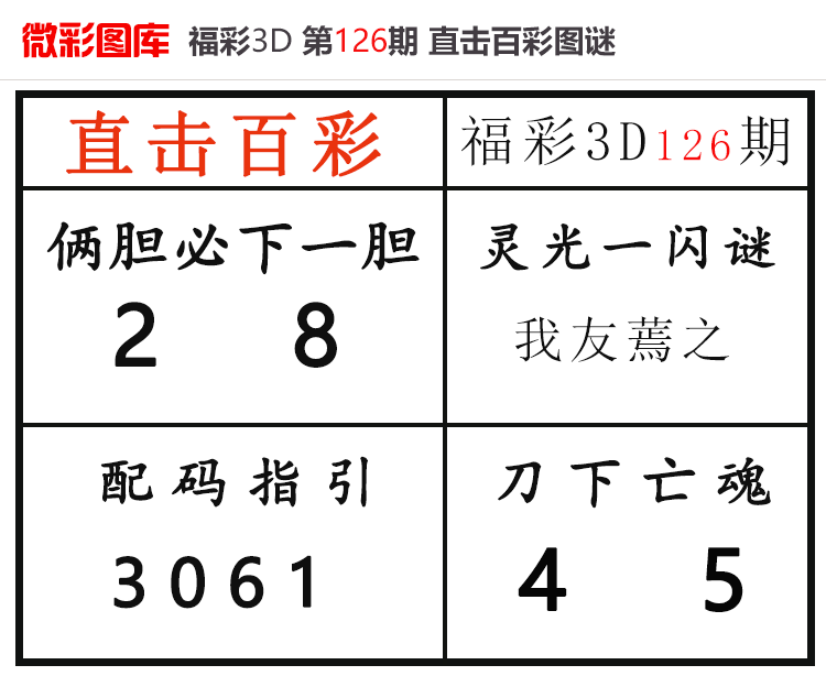 25126期:福彩3D【直击百彩】微彩图谜 上期胆码红3 发表于:2025-05-16 12:15:32 浏览次数:0 25121期:3D图谜 开120 胆码红0 25122期:3D图谜 开488 杀码准 25123期:3D图谜 开725 配码红7 25124期:3D图谜 开809 配码红80 25125期:3D图谜 开351 胆码红3 上一篇:25126期:福彩3D【小野猫快报】精选版图库推荐 上期胆码红3 下一篇:25126期:福彩3D【智多星吴用】预测图 胆码3连红 上期大小红 推荐文章