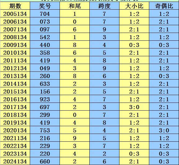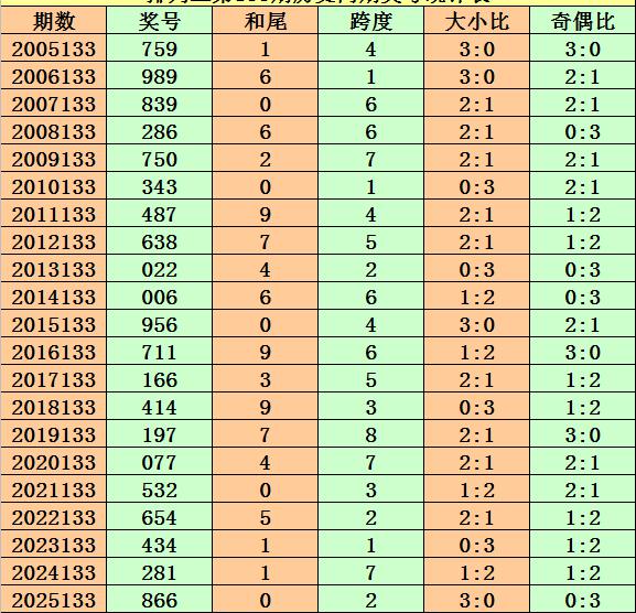 从2004年至今排列三已开出7257期奖号了,本期为排列三2025年第134期开奖,历史同期已出现20次奖号: