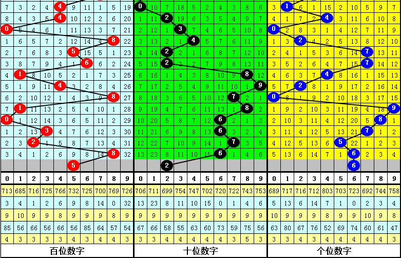 跨度分析:在排列三第134期历史同期中,奖号跨度奇偶比为13:7,大小比为14:6,012路比为7:7:6,跨度出现期数为:跨度7→5期,跨度3、5→3期,跨度4、6、8、9→2期,跨度2→1期,跨度0、1→0期,本期预计开出偶数跨度,精选跨度4。