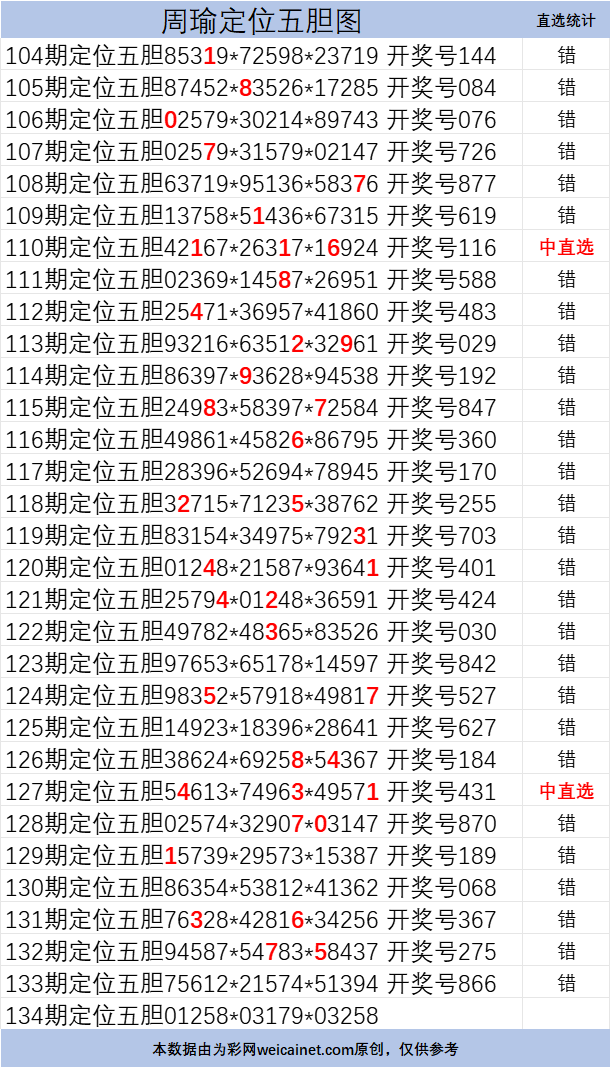 排列三25134期胆码 周瑜定位五胆图
