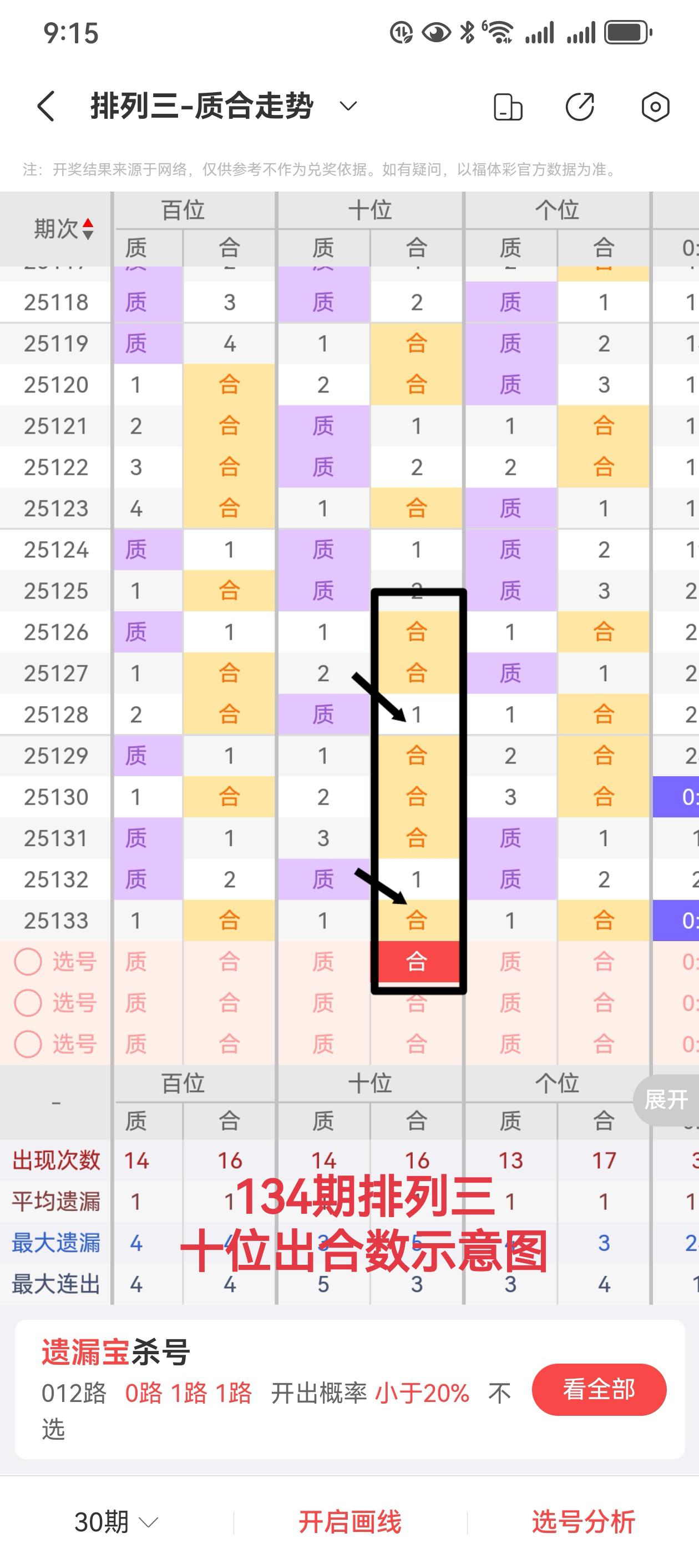 >跨度邻期合出大数呈现连出三期间隔四期连出三期间隔一期连出三期 判断本期就是连出三期的第三期。