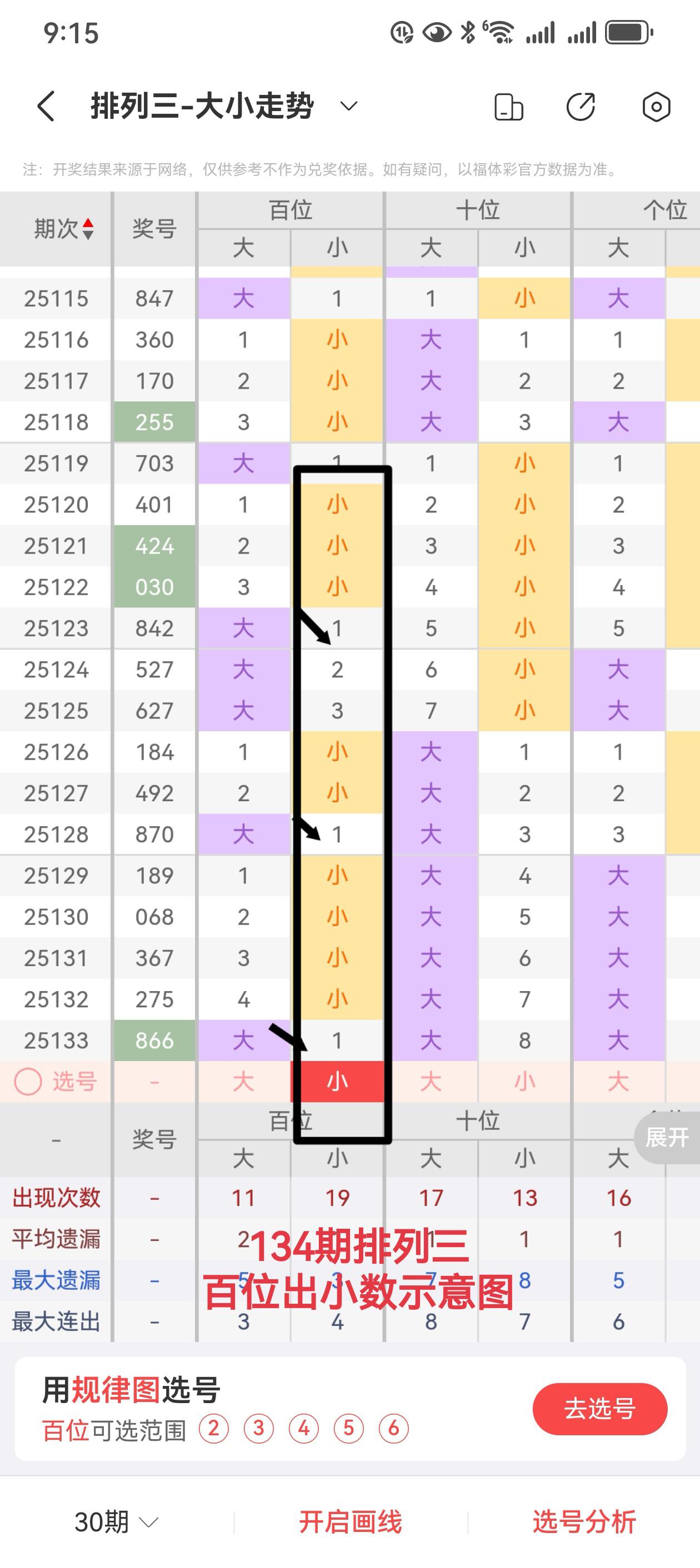 >最大数…呈现连出态势,在30期里面连续表现六次之多。