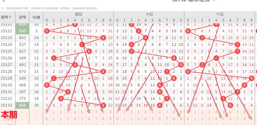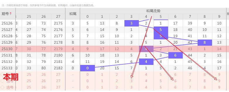 二、本期合值 012 路分析 合值(三码和的个位数)按除以 3 余数分为: 0 路合值:0、3、6、9(余 0) 1 路合值:1、4、7(余 1) 2 路合值:2、5、8(余 2) :近 5 期 1 路合值仅出现 1 次,当前处于低频阶段,结合热码 4、8 的和值特性(4+8=12),需防范补位; 合值 8(2 路):历史上每隔 4-6 期易出现连出规律,上一次出现为第 131 期(合值 8),本期存在周期共振可能; 合值 9(0 路):平衡整体合值分布,热码 7+8+4=19(合值 9)形成逻辑闭环,本期589可作为核心备选。