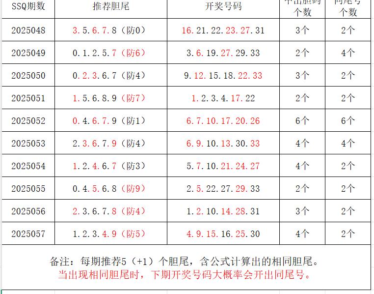 如图,每期推荐胆尾中出1-4个。上期推荐胆尾中出3尾4码!推荐胆尾是按照公式计算的顺序,不定位红球号码的顺序。本期推荐胆尾:8尾/1尾/0尾/2尾/6尾 。加推重点胆尾:***(会员专区可见)。推荐胆码号码:***(会员专区可见)。个人分析,仅供参考。