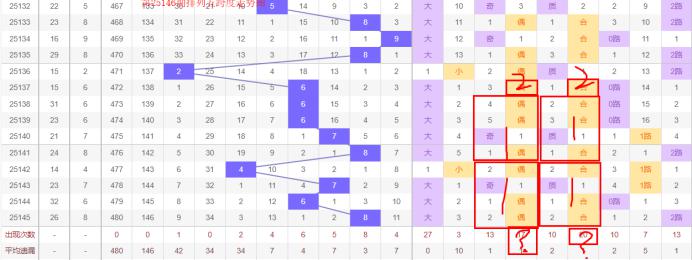 近10期跨度分别为:4、6、6、6、7、8、4、7、6、8,从跨度奇偶走势和质合走势来看,两者形状都以25141期和25142期之间形成中线,上下形状形成对称,按照目前趋势,本期跨度值趋向于【偶、合】,那么满足这两个条件的有【4、6、8】,从012路来看,上一次出现2路跨度值并没有连开,而且整体连开的趋势比较弱,所以本期跨度开【8】的几率较小,可以关注【4、6】,从大小跨度走势来看,小跨度开出的次数不占优势,但从近期遗漏的次数来看,正在逐渐递减,所以本期开小跨度的机会还是有的,所以跨度【4】本期有望开出。