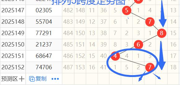 依次是16514和尾,按照012路排序是10211路和尾,后面两期是同路,今天就是0路或2路的和尾,为什么这么讲呢,这个是个大概率的问题,也是根据长期的研究规律定的,准确率相当高,我们定了0 2路的和尾,也就是0369258和尾,那么我们再来看和值,按照和值除3余数的话,可以分为余0 1 2路. 那么我们来看148期和值21余0,149期和值26余2,150期和值15余0,151期和值31余1,152期和值24余0,结合路数关系来讲,所以和值可余0和余1,结合上面的和尾的话就只有6 3 防4 7尾, 这几个尾数。和值的话就是3 6 9 10 13 16 19 12 15 18 22 25 28 33 36 39 42 45 24 27 34 37 这几个和值。